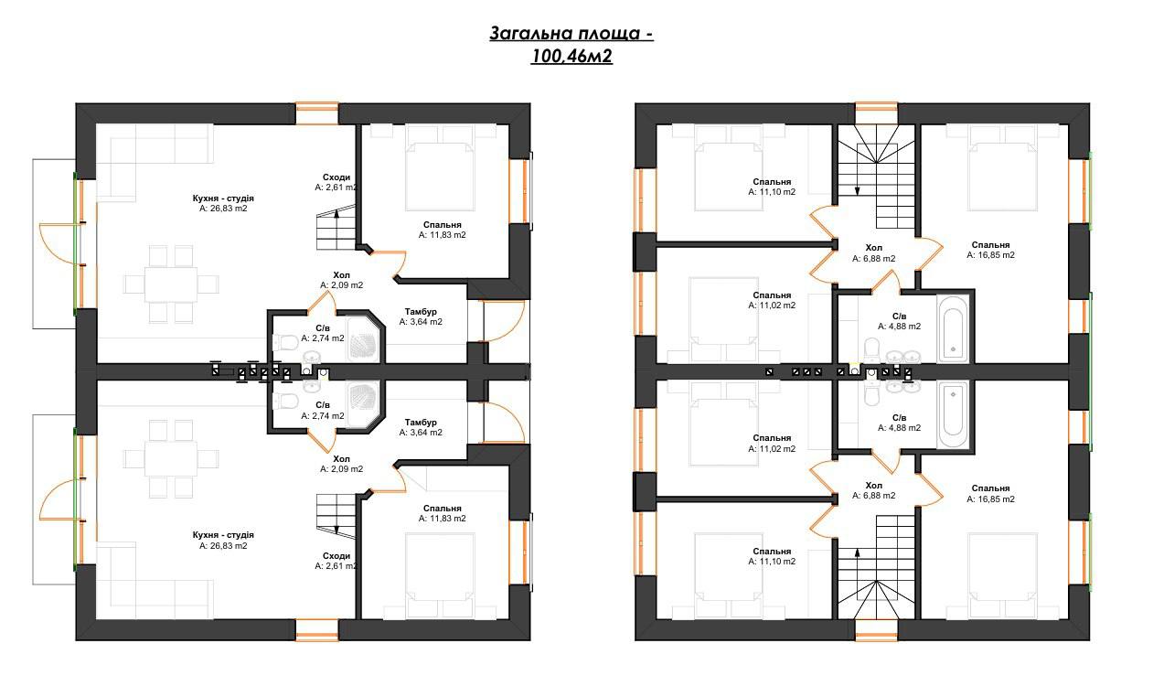 • Загальна площа: 100 м² + мансарда
